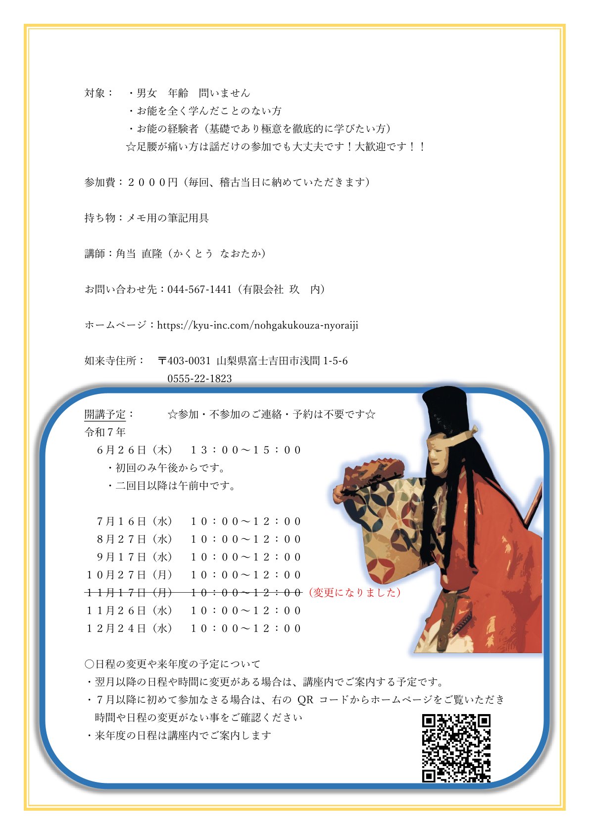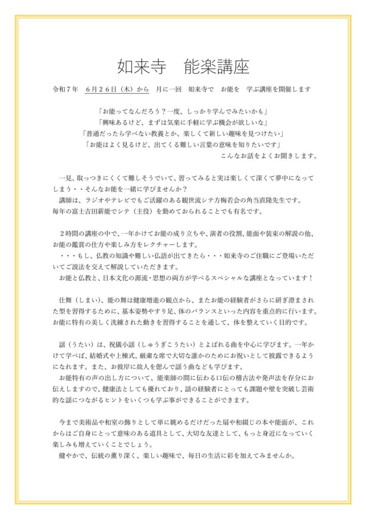 お能と仏教と、日本文化の源流・思想の両方が学べるスペシャルな講座となっています。
